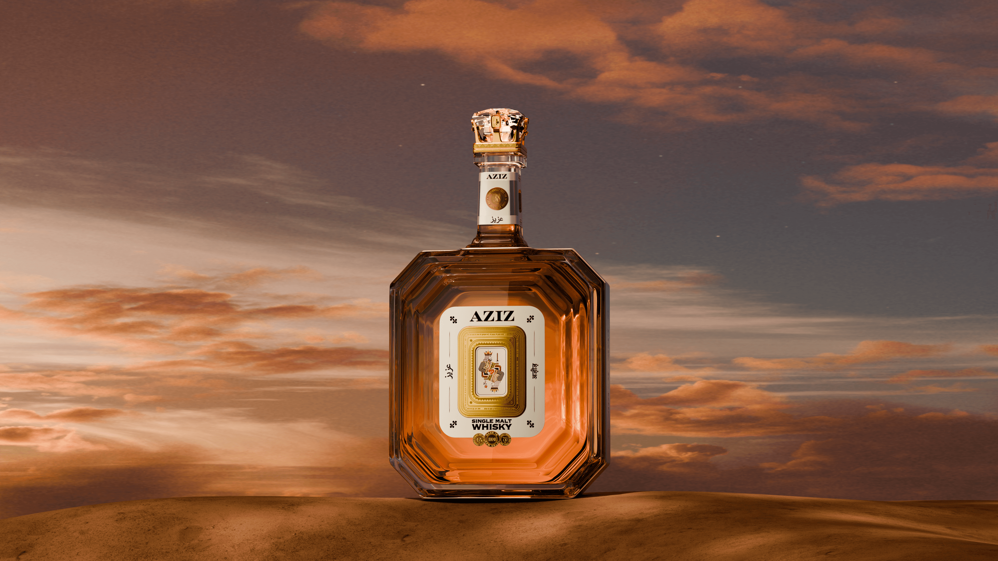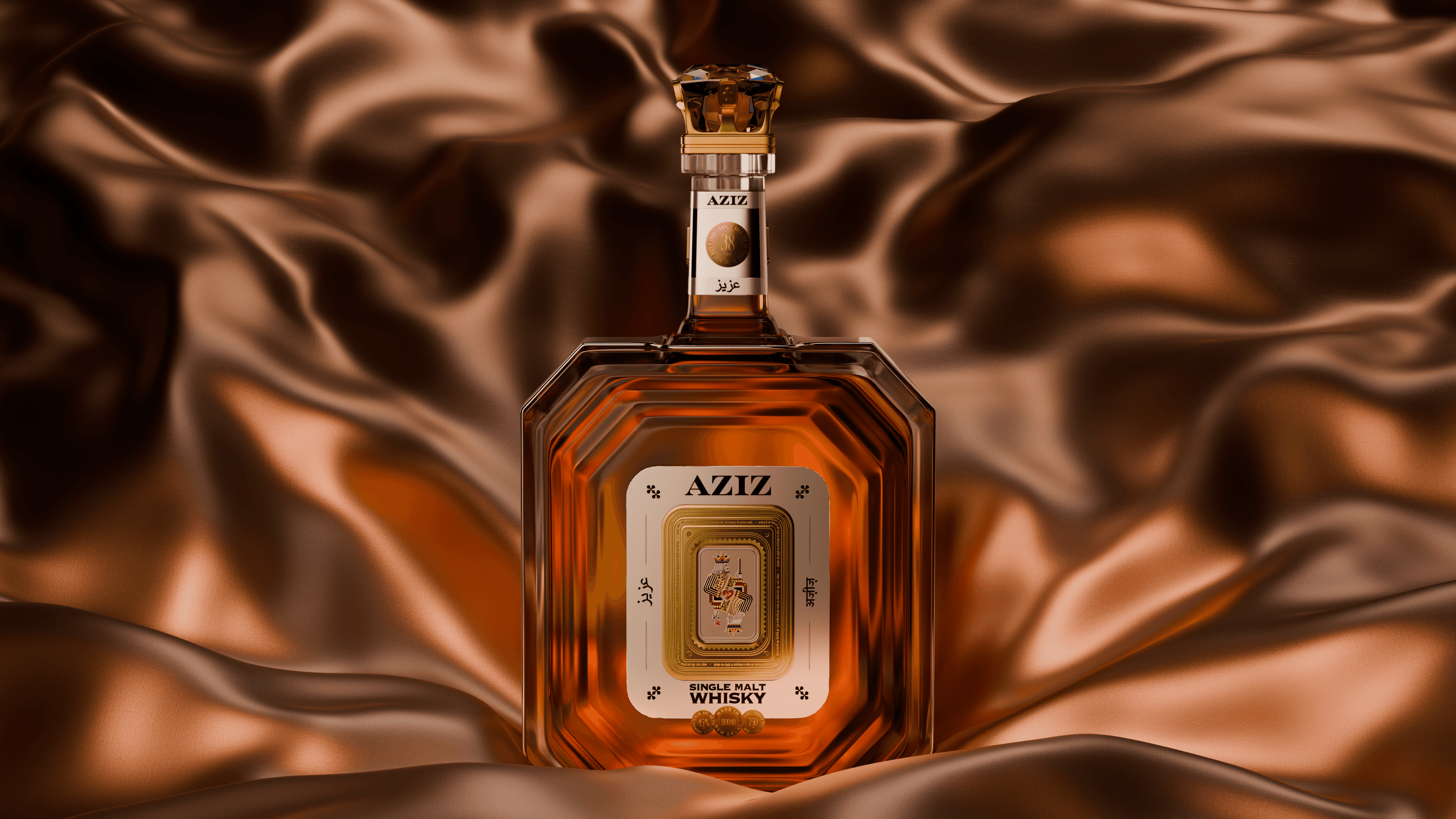 Produced high-fidelity CGI renderings for Aziz, a conceptual single-malt whiskey inspired by themes of royalty, romance, and symbolism.Collaborated closely with the Creative Director to visualize the emerald-shaped bottle and presentation case, focusing on materials, form, and premium detailing.The project was recognized with a Dieline Gold Award and a PENTAWARDS Bronze in the Conceptual category.